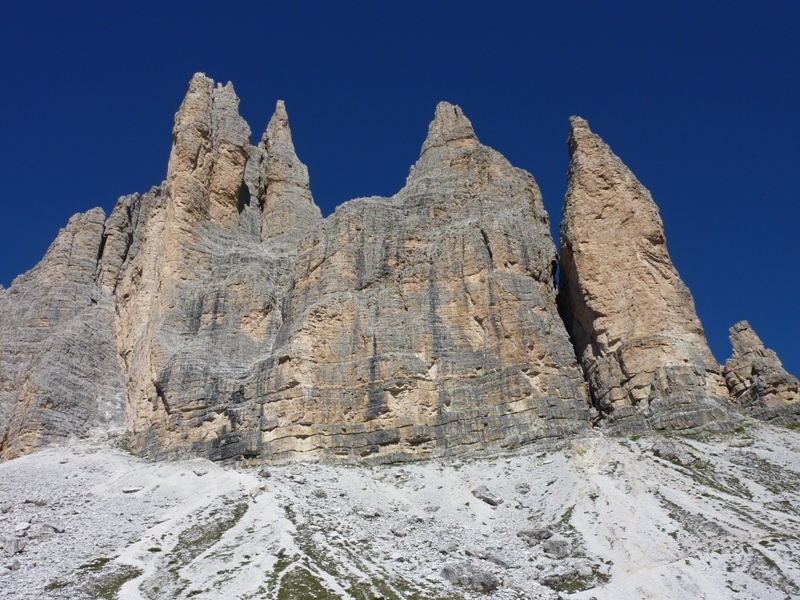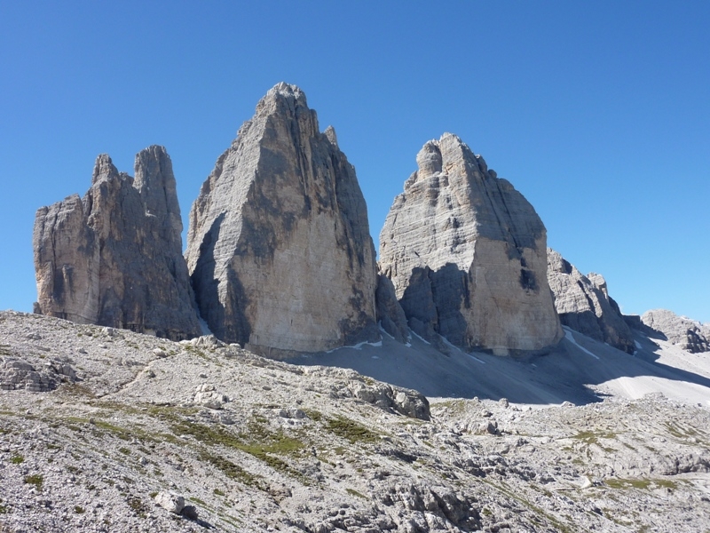 szczyty Tre Cime widziane z Torre di Toblin