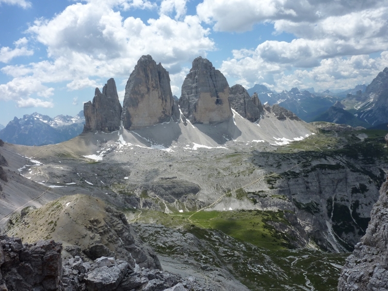 szczyty Tre Cime widziane z Torre di Toblin